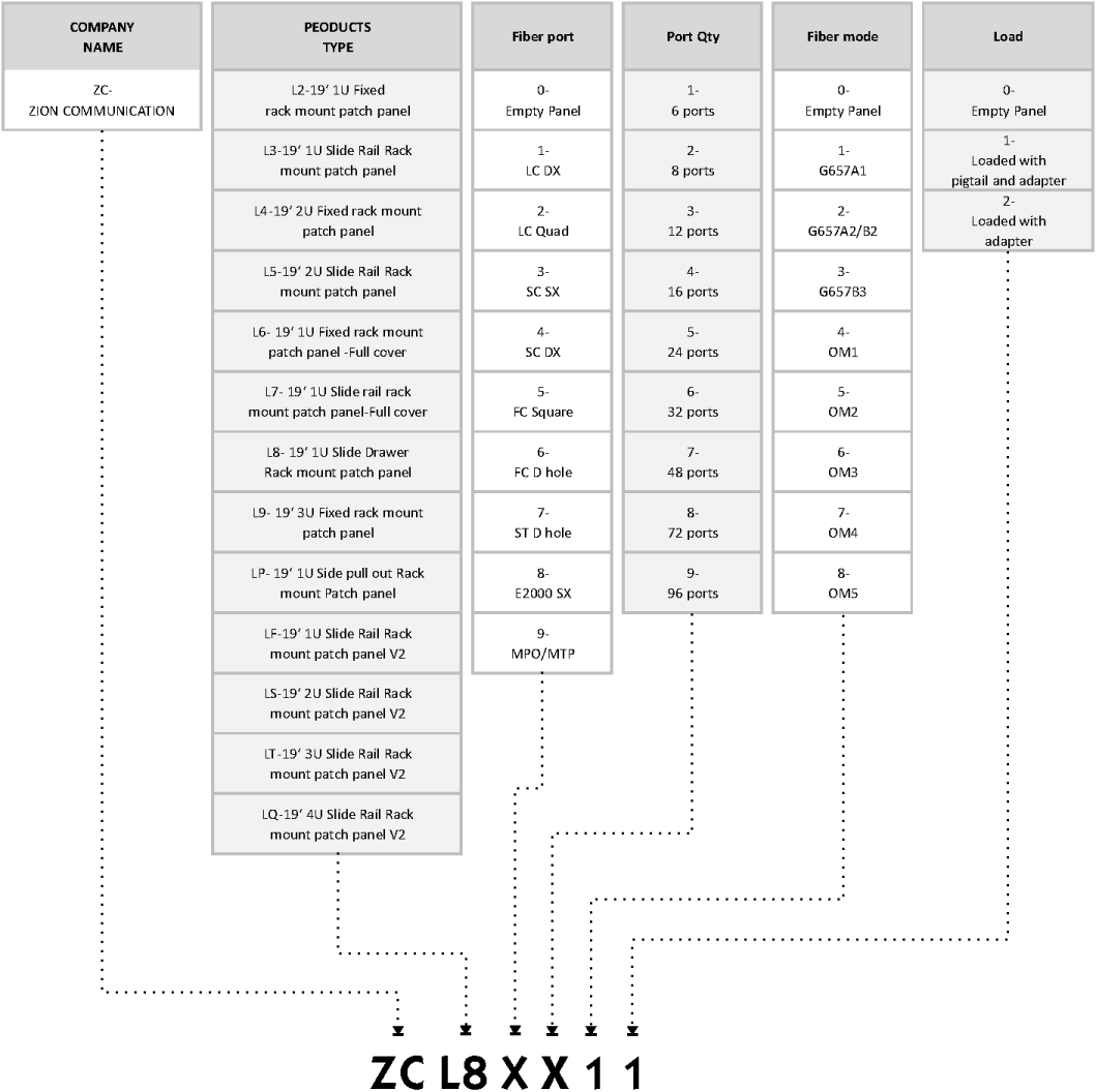 7244201 | ZCL20X00 | 1U 19" Empty Fixed Rack mount Fiber patch panel | |||||||
